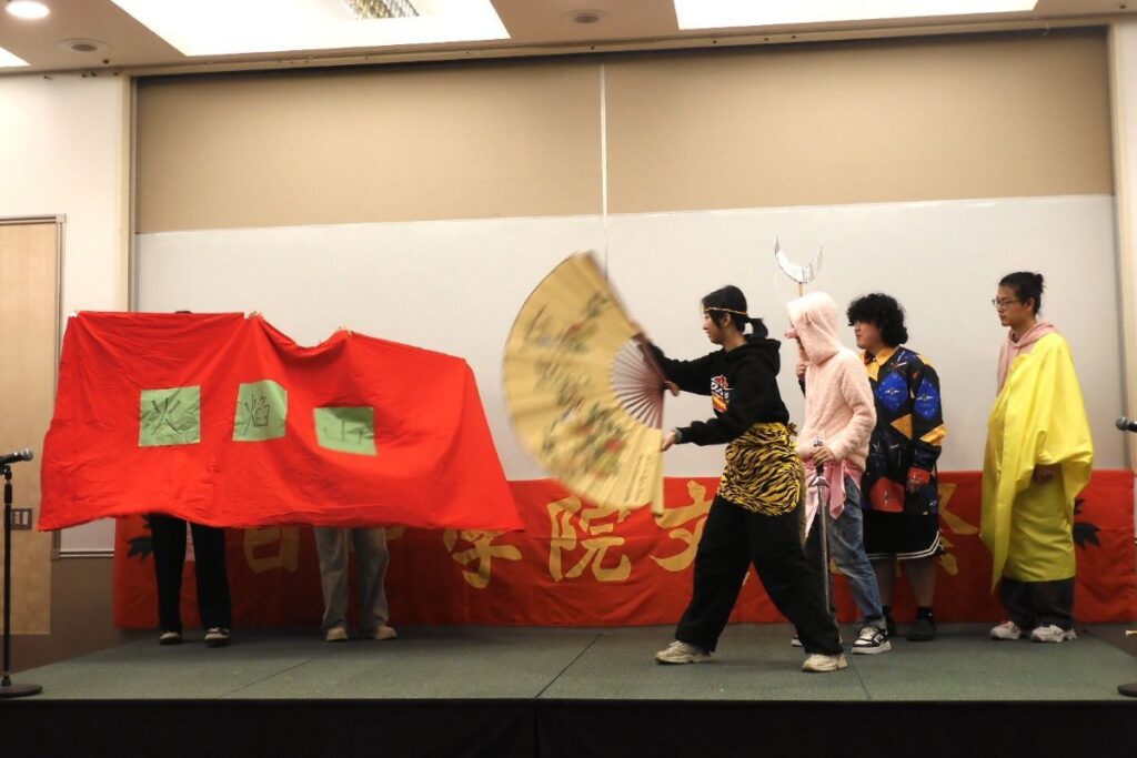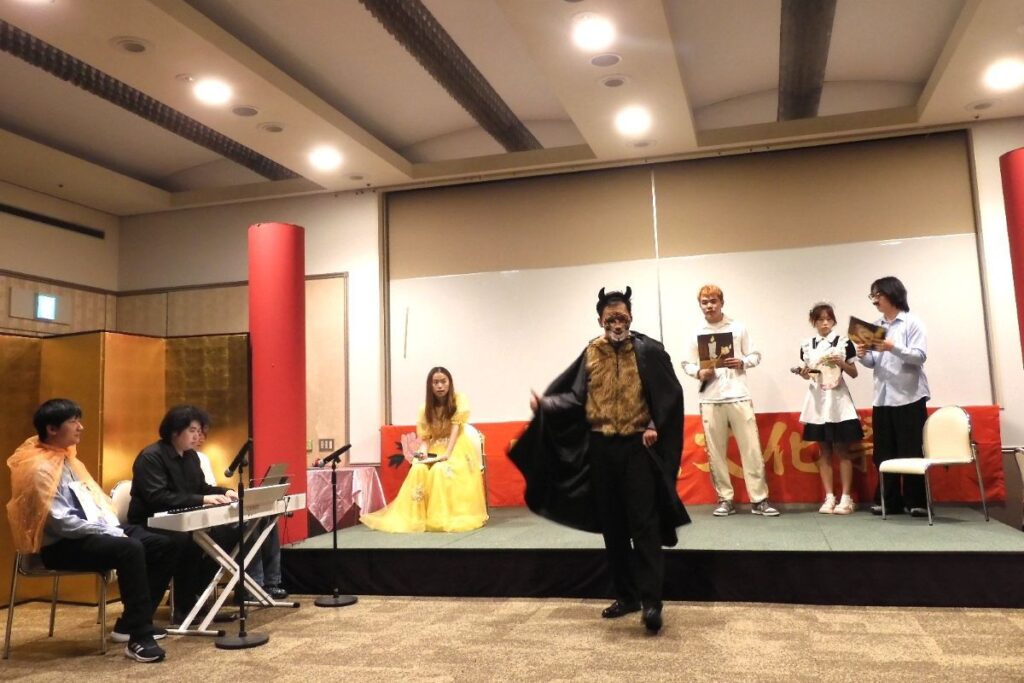 下午的舞台表演环节,留学生们出演了日语话剧,本科生出演了中文话剧。今年留学生参演作品尤为丰富,除了有精心设计的服装、舞台效果及音响的剧目外,更呈现了堪比专业水准的声乐演唱会。